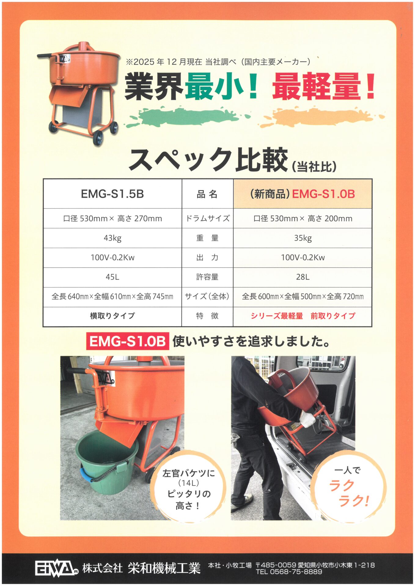 業界最小!最軽量!【※2025年12月現在、当社調べ(国内主要メーカー)】
